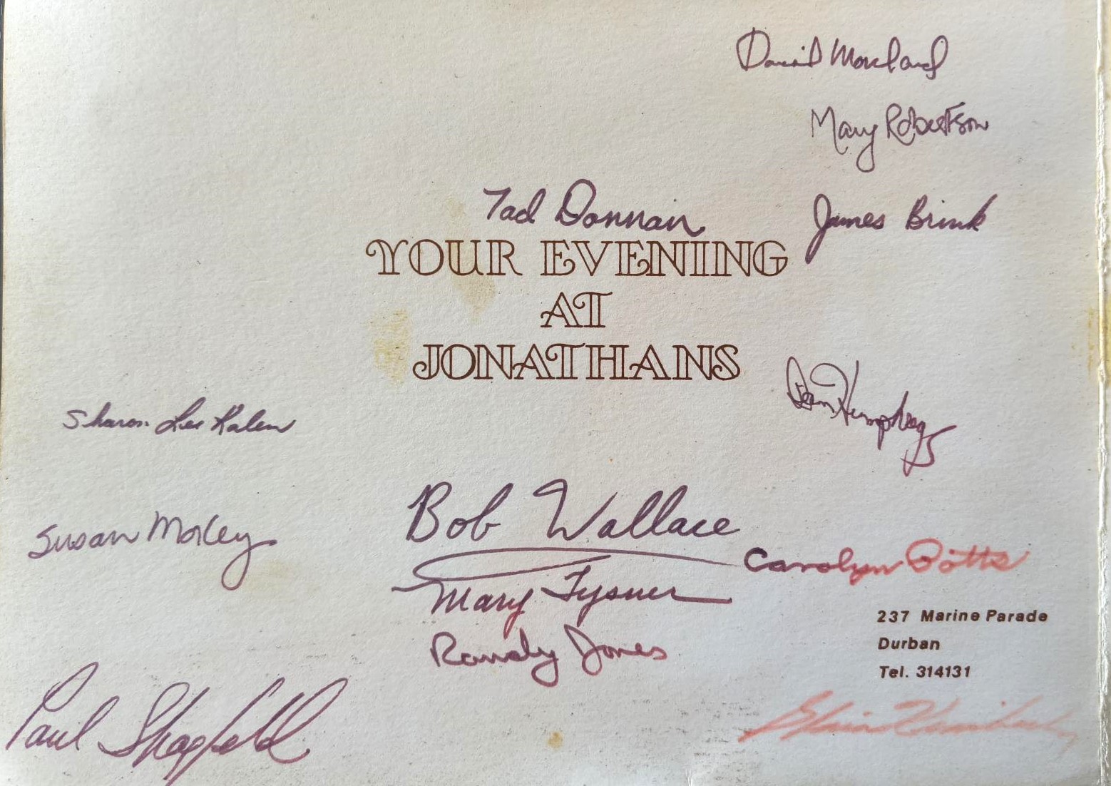 Peter Damon sent these great photos of the Kimberlys and Crew at the Jonathons restaurant in Durban on the '75 First World Cruise.
