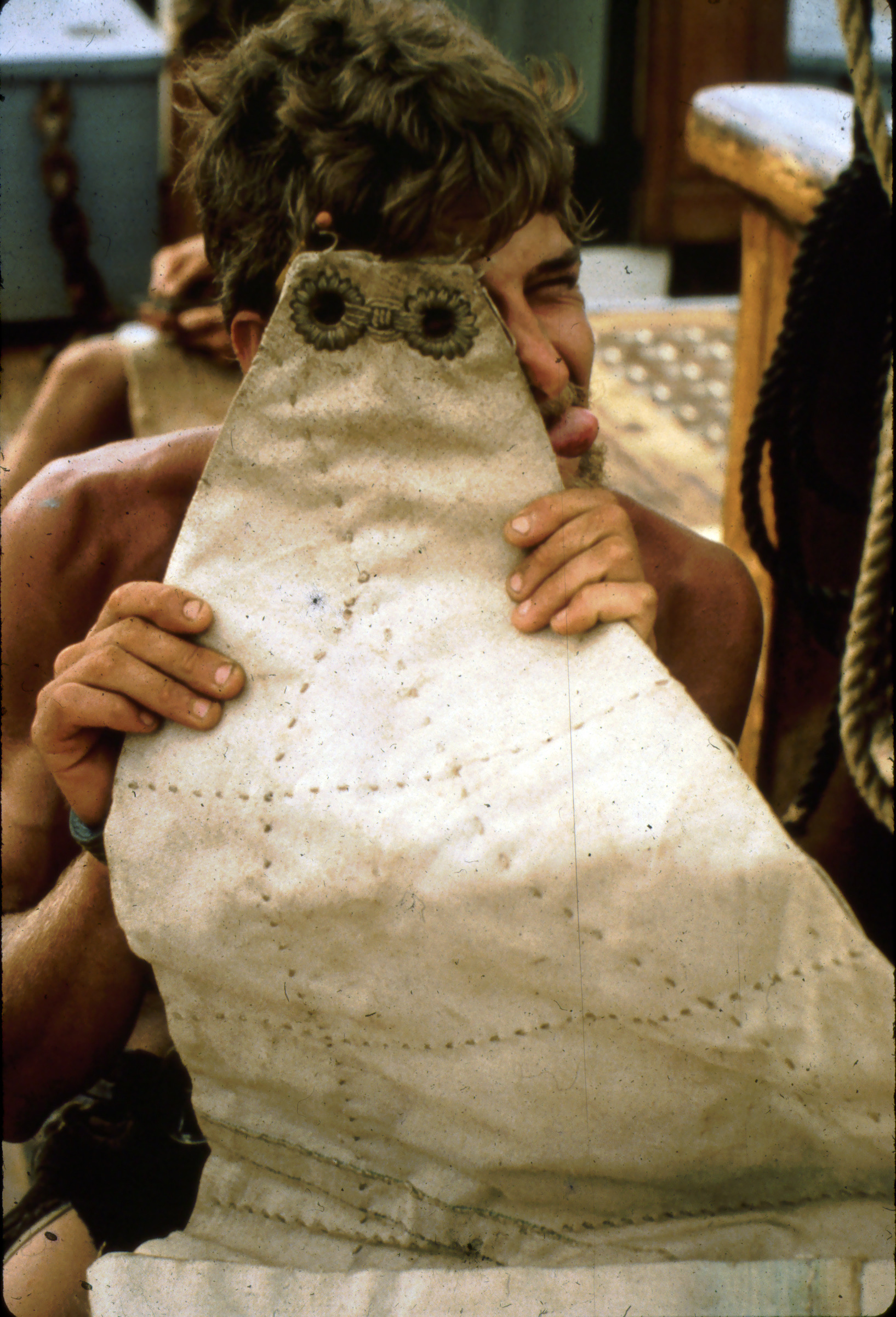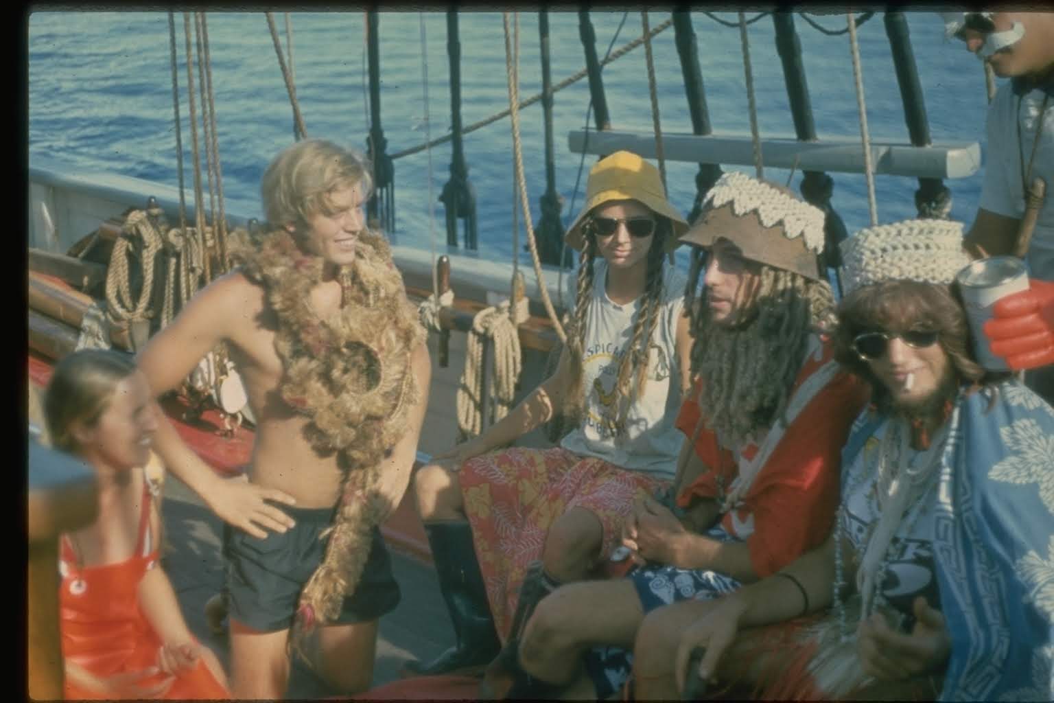 of the second world cruise. He sent me this photo of Marineros Crossing the Line. Bert is next to me as the "hangman", Betsy has the mask on next to Jamie Barker,