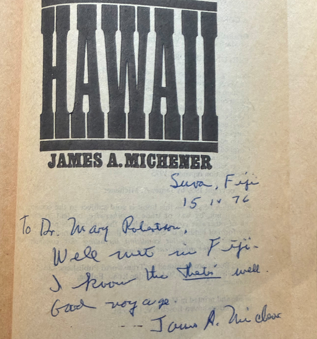 When Romance/we were in Fiji - I cant remember how I managed it - BUT I met James Michener and had bought