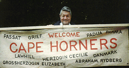 Winter 2001February 12th from Mrs. Kimberly:I'm delighted to say Skipper just received this surprise honor - membership in the South African Chapter of Cape Horners. Skipper is very pleased of course, but took it calmly. I nearly flipped! Now in the light of the International Society disbanding in 2003, the honor is especially rare and appreciated." A letter to Captain Kimberly, dated January 15, 2001 from the South African Cape Horners, shares, "Carol Roehm tells me you wrote her saying you enjoyed Spindrift and would like to subscribe. I mentioned this to our chairman, Capt. Bill Damerell who sanctions such weighty decisions. After discussing this fully we have decided to offer you Honorary Membership in recognition of the enormous contribution you have made to 'Square Rig Seamanship' internationally. It goes on to say, "The visits of the Brigantine ROMANCE are still fondly remembered here in Cape Town. More recently, I had the pleasure of crewing aboard PICTON CASTLE, Master Dan Moreland and one time 1st mate aboard ROMANCE. He proudly showed me the mast boots and said "Skipper made those!" The whole crew seemed in awe of you - even at that distance your benign influence was apparent." So, the honor would be ours if you would accept 'Honorary Membership'. The only other Honorary member is Tor Lindqvist in Australia, who of course spent quite some time in SA involved with LAWHILL and COMMODORE II." Signed, With Best Wishes, JOSH SPENCER (Secretary)