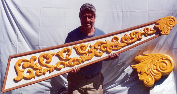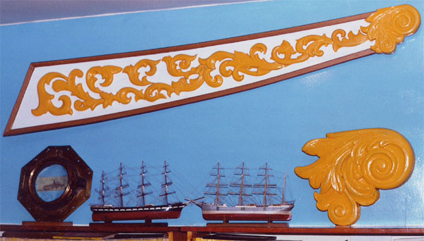 Spring 2003April 1st.The Kimberlys are busy with a new project, redoing ROMANCE's scroll work, hand carving the extensive design out of white cedar.